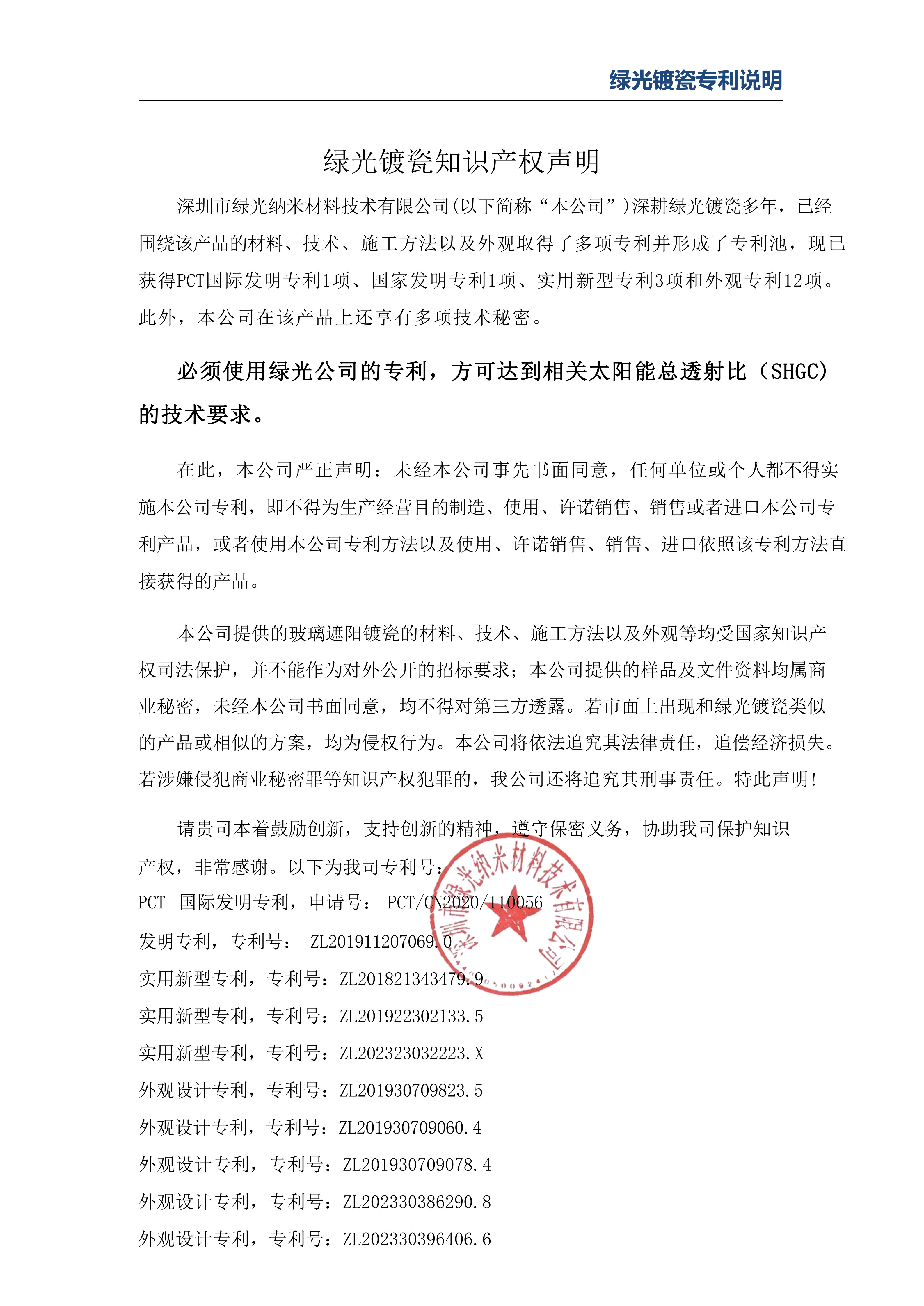 绿光专利商业秘密声明